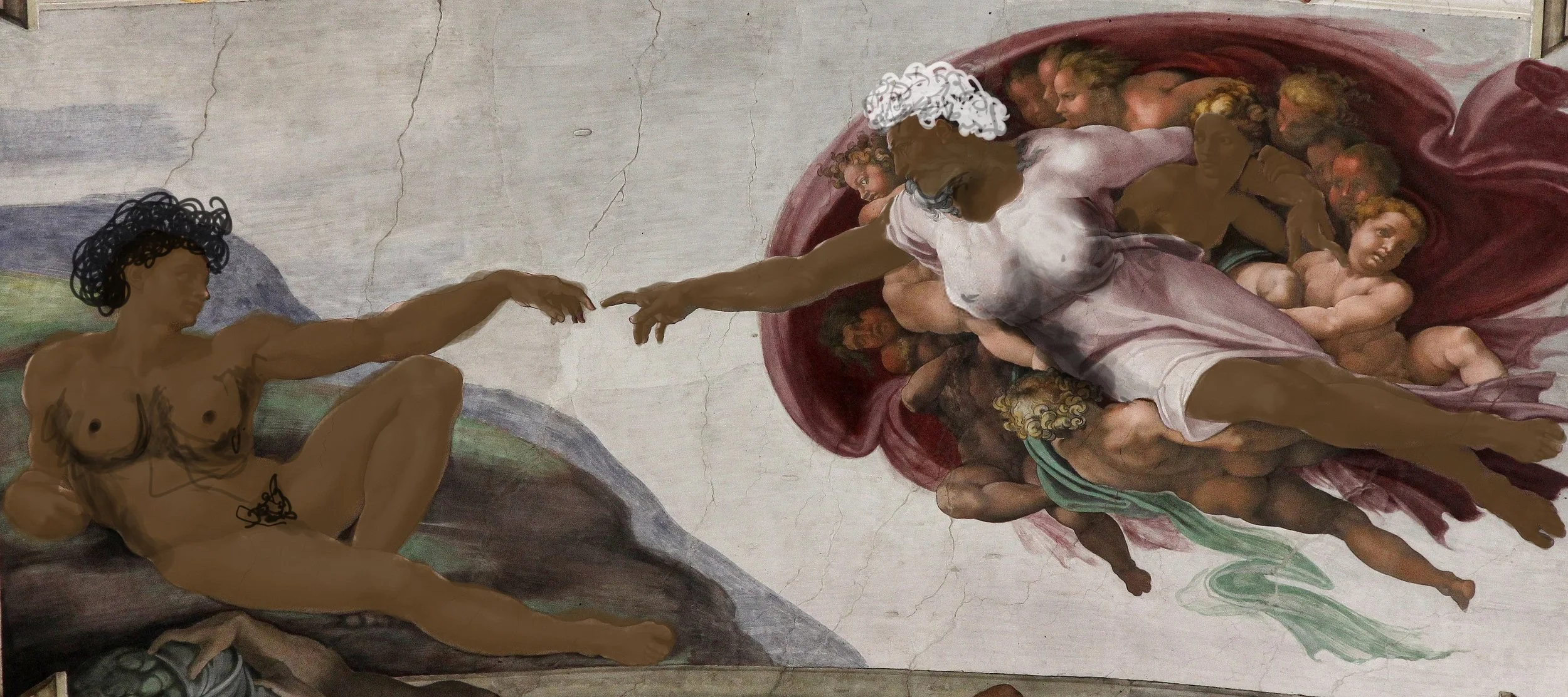 From “The Creation of Adam” to “Black Mother God Creates First Black Eve” (After an excerpt from Michalangelo’s Sistene Chapel Mural)